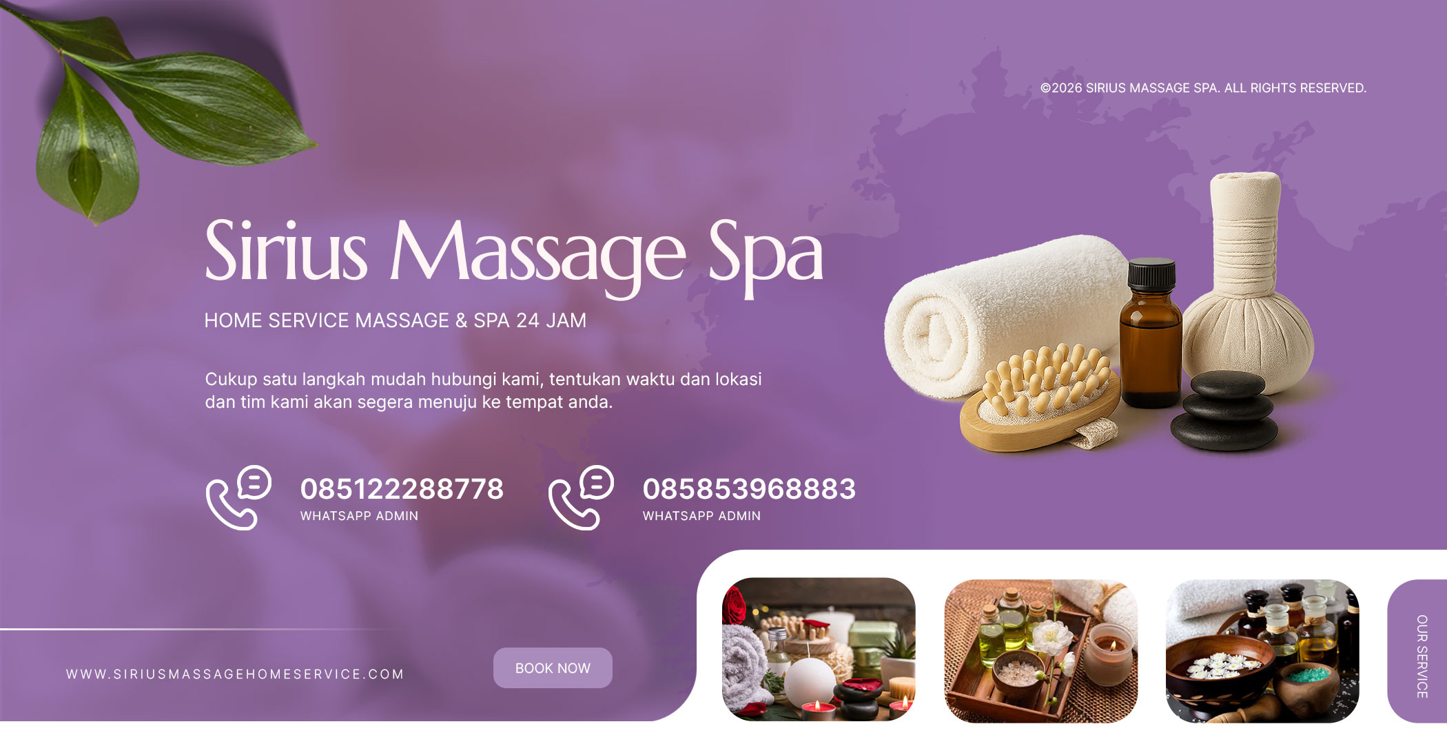 Perawatan tubuh home service massage & spa 24 jam yang melayani area Jakarta dan sekitarnya. Kami hadir untuk memberikan solusi perawatan tubuh yang praktis, nyaman, dan berkualitas bagi pelanggan yang membutuhkan relaksasi tanpa harus meninggalkan rumah, hotel, atau apartemen. Dengan konsep layanan panggilan, kami mengutamakan kemudahan akses, ketepatan waktu, serta kenyamanan pelanggan dalam setiap sesi perawatan.